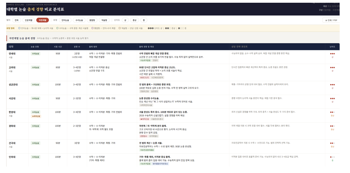 목표 대학·학과 요건에 맞춰 논술 전환 가능성 판단